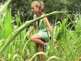 Zierliches blondes Mädchen mit Minititten verführt ihren Dildo